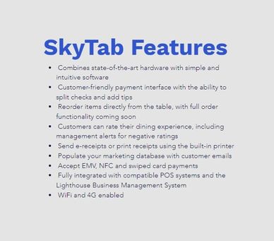 Save time and money with SkyTab POS system for restaurants. Efficiently manage your business – whether it’s a bar, quick service restaurant, casual dining or fine dining establishment – so that you can focus on what’s important: keeping your customers satisfied and spending!